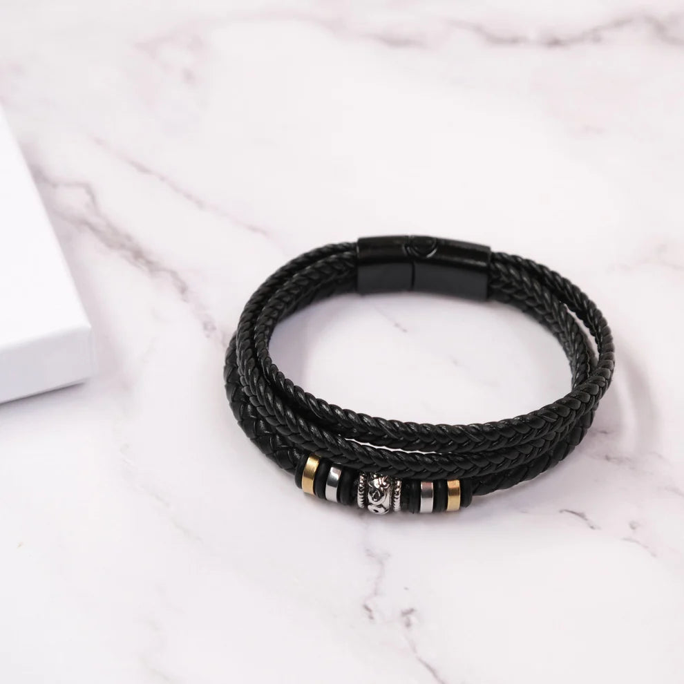 Het strakke en mannelijke ontwerp zal elke outfit complimenteren. De woorden "Love You Forever" staan op de armband gegraveerd, waardoor het een constante herinnering is aan je liefde en steun.